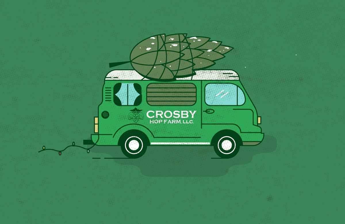 reached out to me and asked me to help the create their holiday card for 2017. They gave the green light to create my own concept and the result was this radical VW van , hauling an oversized hop through winter.